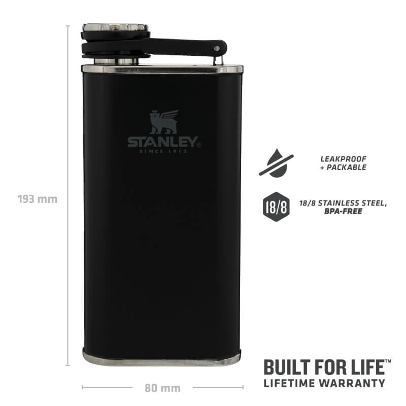 Placatka, butylka, pleskačka, každý tú svoju pomenuje podľa svojho. STANLEY ploskačka Vás nikdy nesklame a objem 230ml je tak akurát. V elegantnej čiernej matnej farbe.