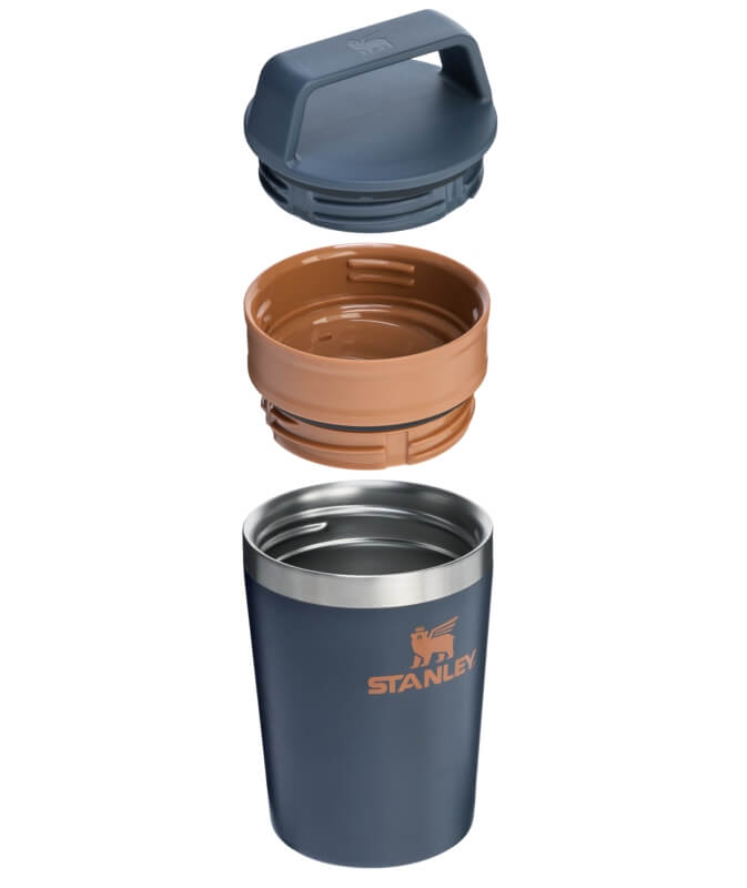 Termohrnček STANLEY The Café-To-Go má dvojitý uzáver, ktorý umožňuje produkt použiť dvoma spôsobmi. Po prvé ako hrnček s náustkom, ktorý sa uzavrie druhým uzáverom s uškom. Pijete cez náustok. Alebo môžete vyradiť náustok a použiť len finálny uzáver. Hrnček potom môžete použiť nielen ako hrnček, z ktorého normálne pijete ale aj ako napríklad malú termosku na jedlo.