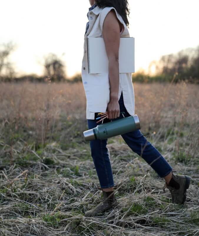 - víčko slouží jako pohárek, kalíšek je dvoustěnný – vnitřní strana plastová bez BPA, vnější strana nerezová ocel. Plast zajišťuje izolaci pro příjemné a bezpečné držení kalíšku v ruce. Ocel zajišťuje jeho odolnost.