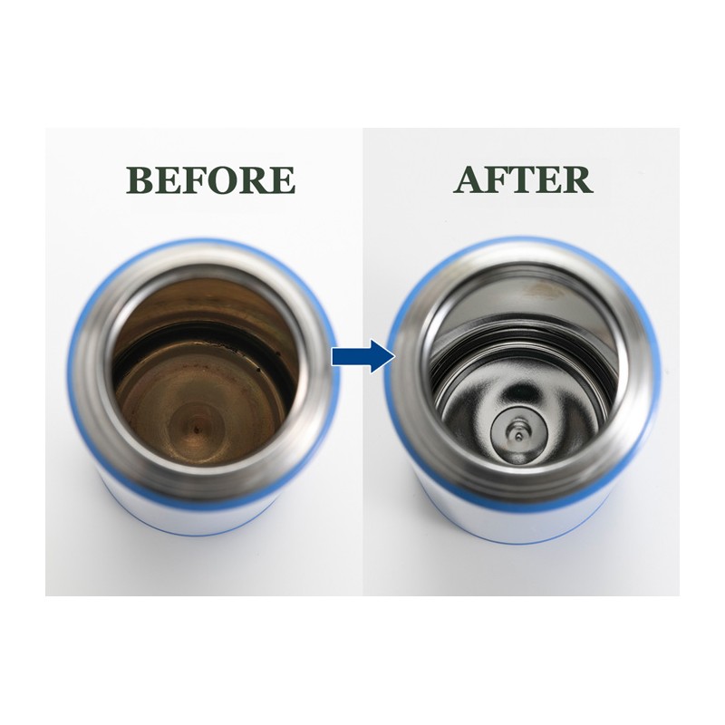 Čistiaci prípravok na čistenie tesnenia, uzáveru a vnútornej časti tela nerezových aj sklenených termosiek, termohrnčekov a termokanvíc. Odstraňuje usadeniny od nápojov, plesne a nečistoty. Čistiaci prípravok má dezinfekčný a bieliaci účinok a je úplne biologicky rozložiteľný. Balenie obsahuje 10 čistiacich dávok.