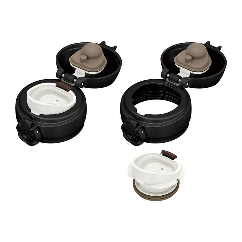Praktický dizajn uzáveru a tesnenia termosky umožňuje jednoduchú údržbu a dokonalé umytie. Jednoduchým stlačením poistky (1) sa vysunie náustok z uzáveru (2).