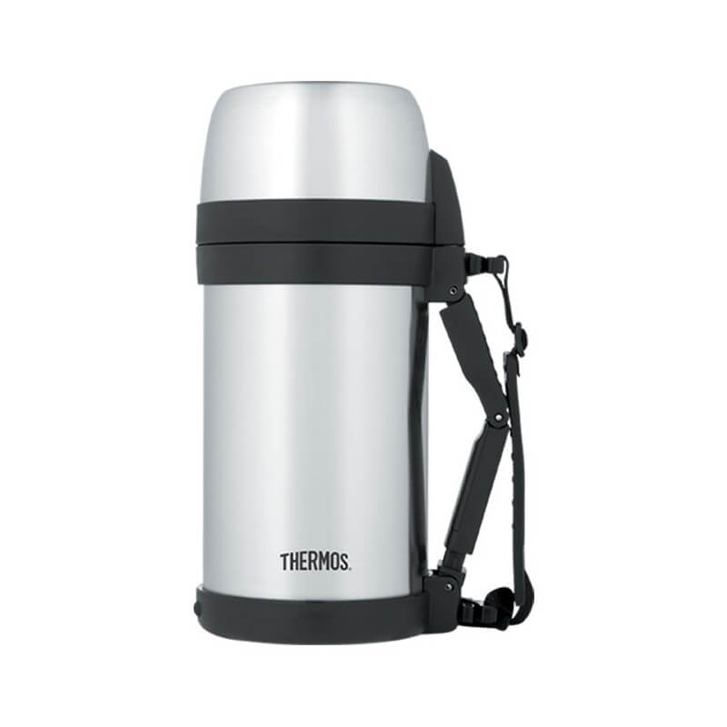 Thermos FDH je univerzálna nerezová vákuovo izolovaná fľaša do outdoorového prostredia. Univerzálnosť termosky je daná širokým hrdlom, dvoma šálkami, madlom, a odopínateľným popruhom. Termoska môže byť použitá ako pre nápoje tak aj na jedlo. Univerzálnosť termosky Termoska je navrhnutá na univerzálne použitie v outdoorovom prostredí. Skladá sa z 1) nerezovej šálky, 2) uzáveru, 3) odopínateľného popruhu, 4) druhej šálky, 5) teleskopického madla. Uzáver termosky Termoska je vybavená výklopným uzáverom s poistkou. Uzáver zaisťuje pokojný tok nápoja aj pri vysokom nahnutí termosky. Výklopný uzáver je možné otvoriť aj zavrieť iba jednou rukou. Široké hrdlo termosky Vďaka širokému hrdlu je možné používať termosku okrem nápojov aj na jedlo. Hrdlo je dostatočne široké na to, aby ním prešla aj ruka – ľahké čistenie vnútornej steny termosky. Prekvapávač na kávu Kávu je možné pripraviť priamo do termosky jednoduchým zaliatím kávy vo filtri horúcou vodou. Prekvapkávač na kávu sadne priamo na hrdlo termosky.