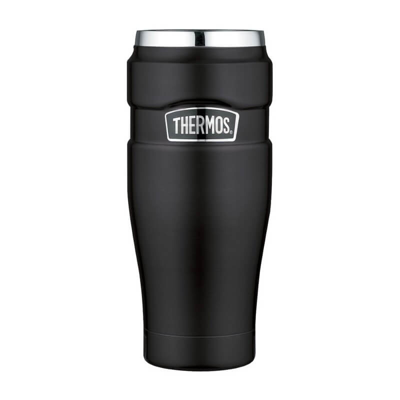 Thermos Style – vodotesný nerezový vákuovo izolovaný termohrnček s otočným uzáverom s objemom 470 ml v matne čiernom prevedení.