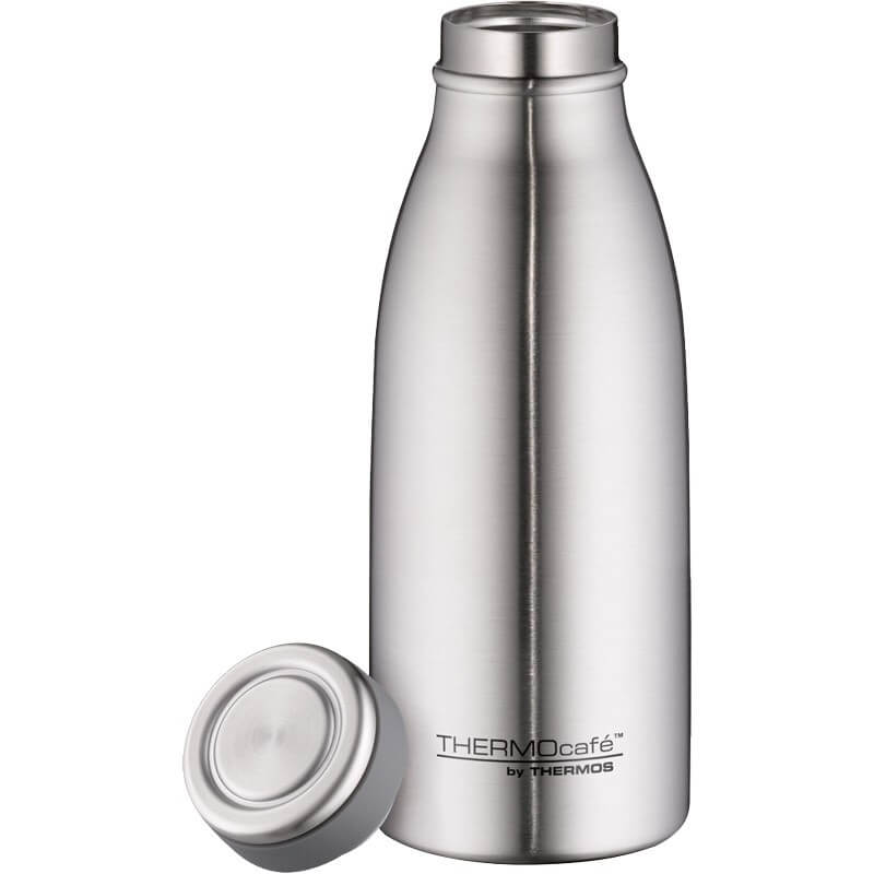 Termofľaša THERMOcafé je nerezová vákuovo izolovaná fľaša s objemom 350 ml s úzkym hrdlom a skrutkovacím uzáverom. Termoska je určená ako na studené tak teplé či horúce nápoje. Nápoj je možné si vychutnať priamo z termosky bez nutnosti nalievania do šálky. Plášť skrutkovacieho uzáveru je vyrobený z nerezovej ocele a je doplnený o protišmykový silikónový krúžok pre ľahké otvorenie/zatvorenie. Vďaka vákuovej izolácii a úzkemu hrdlu dosahuje termofľaša dobré izolačné vlastnosti.