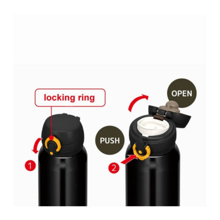 V zúžení tela termosky je nasadený protišmykový krúžok na jednoduchú manipuláciu (body ring). Uzáver je tvarovaný pre ľahké uchopenie a vysunutie z cyklistického držiaka. Termosku môžete ovládať iba jednou rukou.