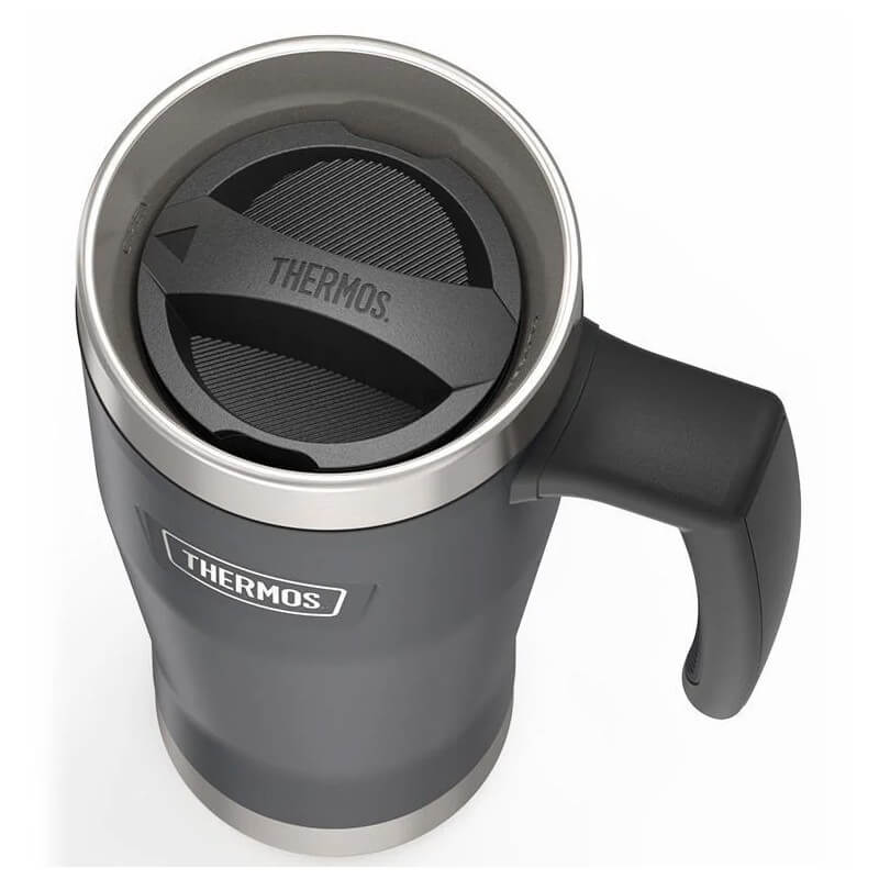 Hlavné prednosti termohrnčeka s madlom Thermos Icon Vodotesný termohrnček s madlom – granite (žulová), 470ml: